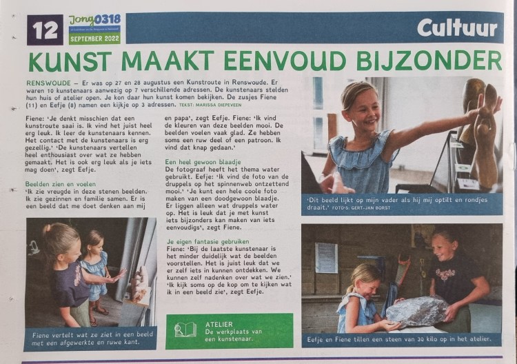 Tijdens kunstroute Renswoude werd er door de krant Jong 0318 aandacht geschonken aan kind en kunst. In dit artikel een impressie.